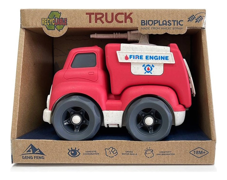 Los modelos de estos camiones están fabricados íntegramente en bioplástico para que los niños puedan jugar con seguridad desde el primer año de edad. – Los bordes lisos y el tamaño grueso hacen de este un gran producto para que los niños pequeños disfruten del juego imaginativo y sensorial, mientras desarrollan la coordinación ojo-mano y desarrollan habilidades motoras. -Esta gama de vehículos de bioplástico ecológico está hecha de paja de trigo reciclada, lo que da a los vehículos su aspecto moteado. Embalado en una caja reciclable.