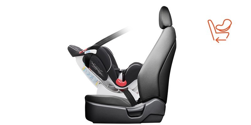 Se posiciona mirando hacia detrás para los recién nacidos (del nacimiento a 10 kg), a partir de entonces se puede posicionar mirando adelante (9 kg – 25 kg)